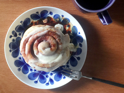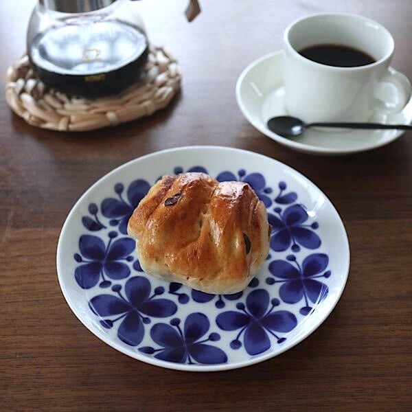 北欧には「フィーカ」というおやつの時間があるのをご存知ですか?フィーカはコーヒーを飲みながら甘いものをいただく習慣のことだそうです。先日シナモンロールを買ってきたのですが、シナモンロールといえば北欧のお菓子ということで、北欧らしいブルーのお花模様がかわいいモナミのプレートにのせていただきました。このプレートはこぶりのパンやお菓子をのせるのにちょうどいいサイズ感。おやつの時間はこのプレートでフィーカを楽しんでみませんか?
