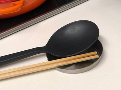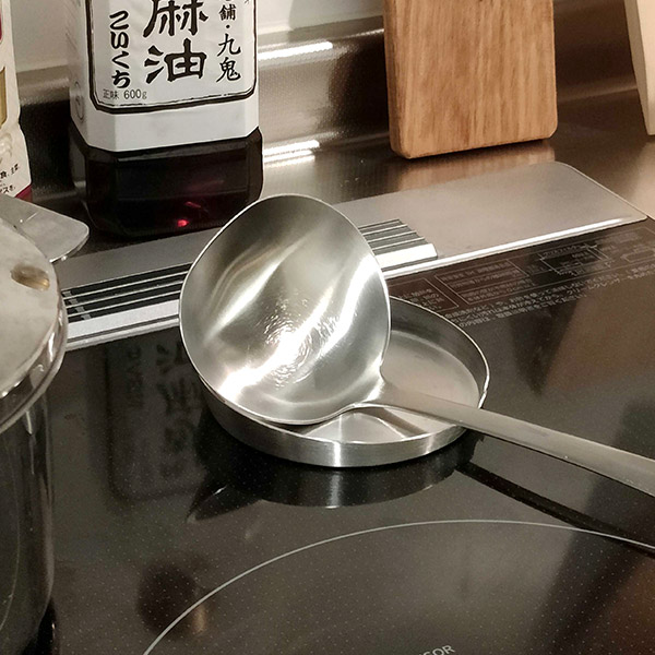 調理中のちょっとしたイライラだったお玉や菜箸の置き場所。このお玉置きはさっと出せて、使わないときはすぐにしまえる最小限のコンパクト設計なところが気が入っています。台所だけでなく食卓でホットプレートを使うときにも大活躍です。