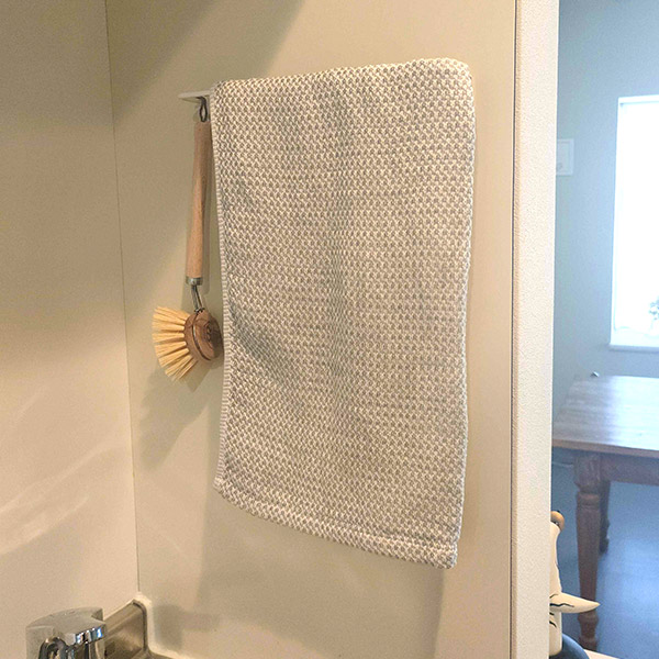 入れ方がヘタで食洗器が上手く使えず、主に手洗いです。水切りかごの代用品として角盆ざる2枚が活躍中。すぐに拭けばいいのですがズボラが発動して狭いカウンターの1/3ほど占領されることもしばしば。店長の熱望で実現したフコカのサンプルをさわって、これなら…と思い購入です。ポイントはタオルとして使いたいくらいのふわふわ感。評判通り抜群の吸収力でサッと拭き終わります。一日使っても臭わないのもうれしい!