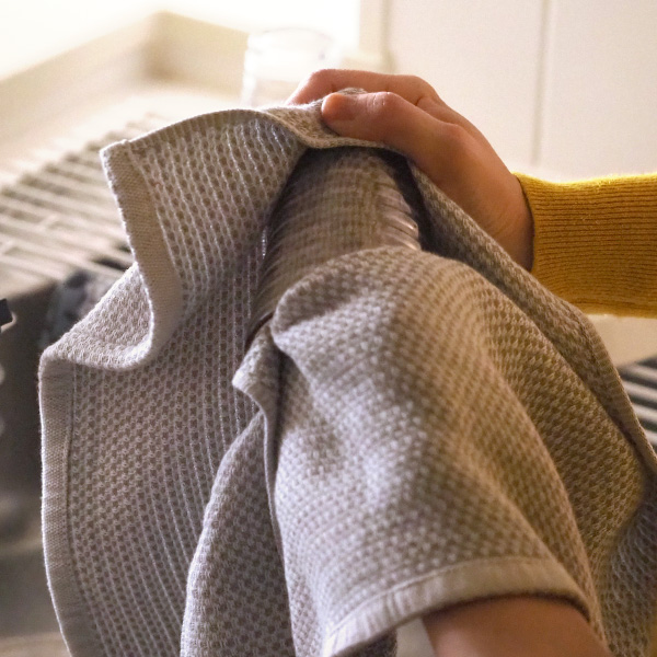 食器拭き、お手拭き、台拭きなどに使用するふきんやキッチンクロスは用途に適したものを使うと快適になります。大判で吸水力の高いキッチンクロスなら家族分の食器を一度に拭くことができ、吸水性、速乾性に優れたかや織のふきんは台拭きやお手拭きにぴったりです。また、リネンのクロスは繊維の奥まで汚れが入り込みにくい特性を持っているため、キッチン周りにも最適な素材です。いつも清潔にお使いいただけるよう、嫌なにおいがしにくい抗菌・防臭性などの高機能製を備えたふきんもご用意しています。