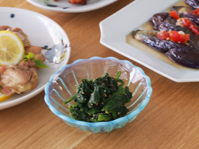 涼しげなガラス食器は夏に欠かせないアイテムです。淡いブルーの色合いが涼しさが出ていて、どこかレトロな感じがお気に入りです。副菜の他にもソースや漬物を入れるのにおすすめです。