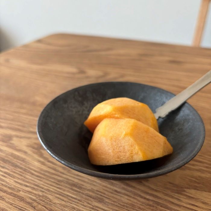 数年前に飯高さんの器を購入し愛用していたのですが、今年のプロキッチンの陶器市でも素敵な器が...!ご飯茶碗は迷うことなく購入したのですが、商品撮影の時に2種類の葡萄を盛り付けた小鉢刷毛黒に心を奪われそちらも購入してしまいました。マットな黒にオレンジが映えて切っただけの柿が素敵おやつに大変身です。ほうれん草の胡麻和えや白和えなどのおかずを盛り付けても◎おやつでも食事でも様々なシーンで食卓に溶け込む飯高さんの器は老若男女の皆さまにおすすめです!