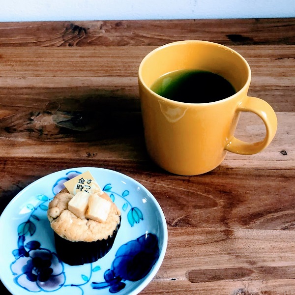 ティーマのマグカップはブルー系が好きでいくつか持っているのですが、このハニーは、おいしそうな色合いで見てるだけで幸せになります。今日のおやつは、サツマイモのマフィンにあわせて緑茶を入れてみました。さむくなったら温かいショウガ茶を飲んだりするのもいいなあと思ってます。1年中使えそうで楽しみです。