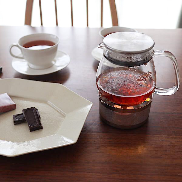 ずっとティーポットが欲しいな~と思いつつもハリオのサーバーで頑張っていたので、以前から気になっていたKINTOのティーポットを使ってみることに。フタと一体の茶こしは茶葉が絡まらずに洗えてストレスがなく、持ち手も大きくて持ちやすい!とシンプルな見た目だけじゃない優秀さに心を掴まれました。ただ、あまり傾けるとフタが外れてしまうので、残り少なくなってきたらフタを抑えて注ぐのがよさそうです。