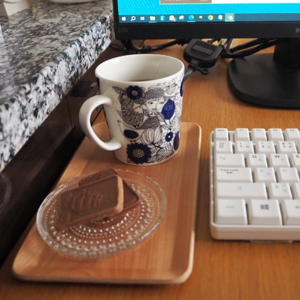 在宅ワークの合間にコンビニスイーツを食べるのが、習慣化。「カフェに行けないから、しょうがないよね」と言い訳しつつ、いそいそと、このキントーのトレイに乗せて運んでいます。木肌の美しいバーチの積層材で作られていて、おうちカフェで、ほっと一息つく時にぴったりです。