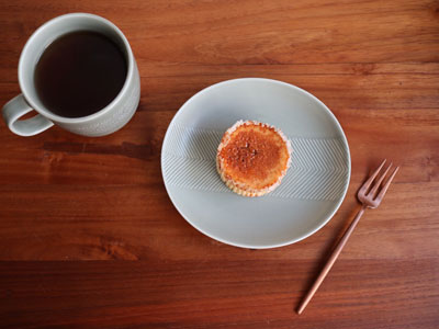 スモーキ―な色合いのプレートとマグカップのセットには、このアンティーク風な「アンバーゴールド」シリーズがぴったり! ケーキやデザートをいただくのに、このペストリーフォークのサイズ感がちょうどいいです。