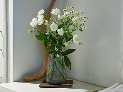 私事ですが、少しの間入院をしていて退院のときに花束をもらいました。どんな場面でもお花をもらうのは嬉しいですね。このキントーのアクアカルチャーベースは水耕栽培もできますが、上皿を外したら通常の花瓶として使えます。口が細くなっているので無造作に活けてもそれなりに形になり、下に重心があるのでボリュームのあるお花も倒れる心配をせず安心して飾ることができます。それだけで目立つという花瓶ではありませんが、その分お花を主役にしてくれる花瓶です。