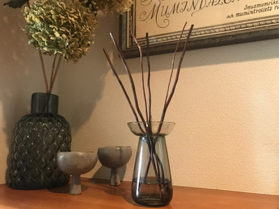 手作りリードデュフューザーにも使っています。アロマオイルやフレグランスを水性エタノールで好みの濃度に薄めてリードを指すだけ。水耕栽培やサボテンに便利な上皿は間口が狭いのでリードも広がりすぎずピッタリです。部屋にお気に入りの香りが広がりますよ。