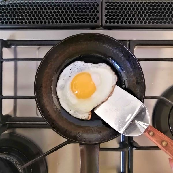 お弁当のおかずや朝食の目玉焼きなど、ちょこっと使うのに本当に便利で、しかもおいしく出来る「ちょこっとフライパン」。その相棒ともいえるのがこの木柄ミニターナーです。 フライパンが小さいので、この小さいヘラと短い柄がとっても使いやすい!もちろん、大きい鉄フライパンでもよく使います。理由は、柄が短いからまるで自分の手でひっくり返しているように使えるから。これは使った人にしかわからないので、ぜひ、使ってみてください!!