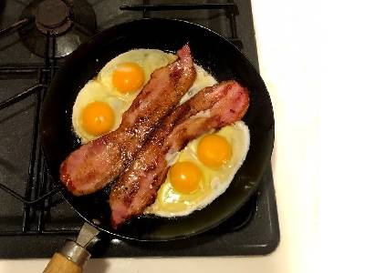 使い始めて今年で6年目のフライパン。買ったばかりの時は灰色がかった鉄の色だったのですが、すっかり黒光りするフライパンになりました。汁気の多いものを調理すると少しカサカサになることもありますが、そんな時は油ならしをしたりしながら使っています。ベーコンもカリカリに焼ける頼もしいフライパンです。