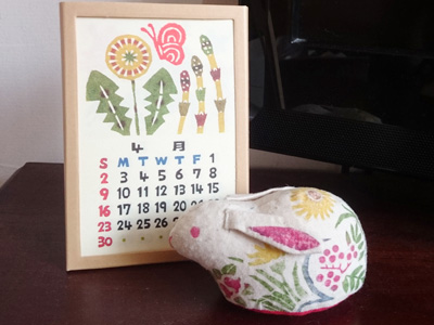 4月はイースターということで、お土産でいただいた出西窯のカレンダーとともに干支の中からうさぎをセレクトして飾っています。岐阜と島根、遠く離れた県で作られたものだけど、違和感なくなじんでくれています。