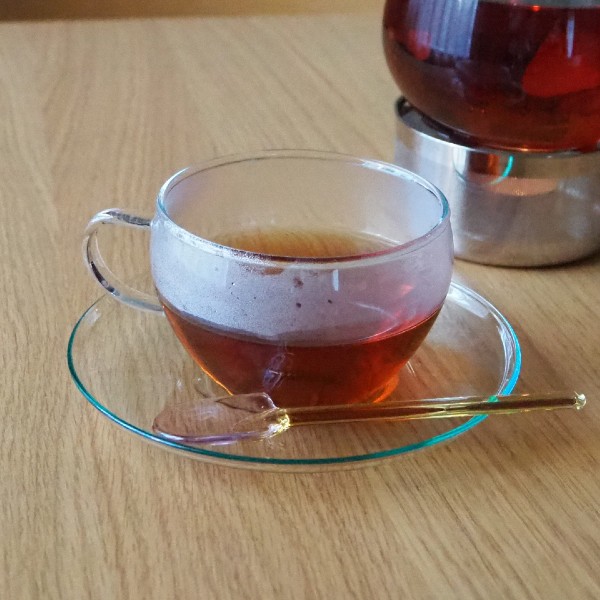 ハーブティーを飲むときはガラスのカップ&ソーサーでお茶の色も楽しむようにしています。ボヘミアクリスタルの器は耐熱ガラスでありながら薄さと軽さがとっても心地いいアイテム。寒い季節にはカップのみをスープ用としても活用しています。食洗機&電子レンジに対応しているので、気軽に使える点もおすすめポイントです。