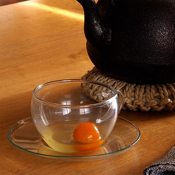 撮影で作った金柑の甘露煮。このシロップもきっと美味しいよねということで、お湯で薄めて飲んでみることに。カップはどれがいいかしらと考えて、これだ!と手にしたのがこちらのカップ&ソーサー。この後鉄瓶からお湯を注いだのですが、艶やかな金柑がくるくる動き回る姿に癒されます。持ち手も全く熱くならずに持てますよ。爽やかな酸味と甘みのある金柑シロップのお湯割り。金柑は潰してから頂くと更に美味しかったです。