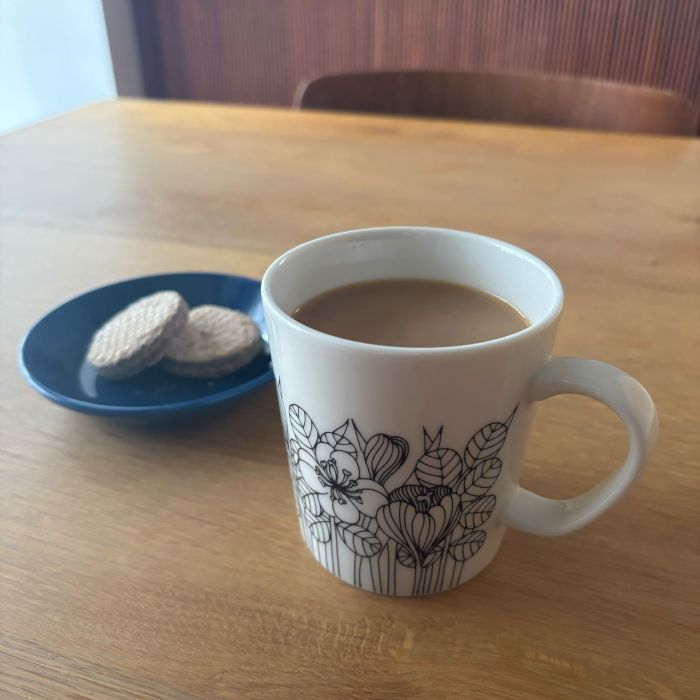最近コーヒーは牛乳や豆乳、オーツミルクを入れるのが好きで、気分でどのミルクにするか楽しんでいます。仕事中もコーヒーは必須で、大体ドリップバッグにミルクを入れるのが毎日のルーティーンになっています。カフェオレってたっぷり飲みたいから一般的なマグだと少し容量が足りない...かといってカフェオレボウルだと横に広くてデスクには少し窮屈。そんな時、このクロッカスのマグはコーヒー+ミルクがちょうどいい!すっと縦に長いすっきりしたデザインや春の訪れを感じさせるお花のプリントもお気に入りです。