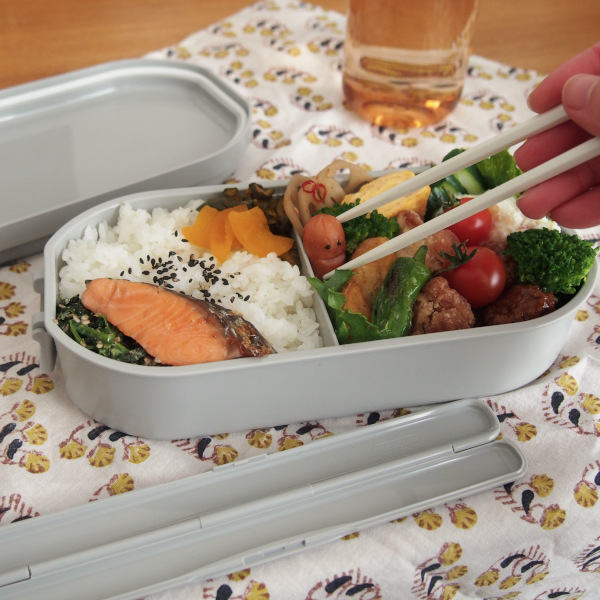 プラスチックのお弁当箱は扱いやすさが魅力。フタ以外は食洗機&電子レンジの使用が可能。フタを外せば電子レンジでお弁当を温めて食べることができますし、保冷剤入りのフタは少々重たいですが本体は軽量なので持ち歩きも楽ちん。密閉性の高いパッキンが付いているので汁漏れの心配もないですよ。