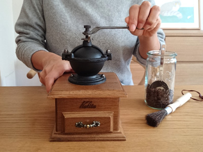 朝はまずコーヒーを挽くことから始まります(主人が)。プロキッチンで取り扱う前から愛用してるカリタのミルは今でも買った当初と変わらず豆を挽くことが出来てます。カウンターに出しっぱなしにしているので埃が入らないようにドームタイプにして正解でした。「コーヒーは好きだけど豆を挽くって面倒・・・」と思ってる方にぜひおすすめしたいです。