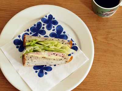 この日は美味しそうなゴマ食パンを買ったのでハム&チーズのサンドイッチに。