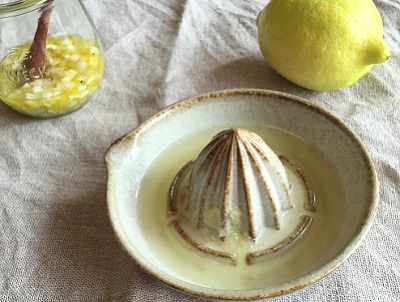 ねぎ塩レモンダレは肉や魚料理だけでなく、冷やしトマトにかけたり、そうめんのタレにちょっと加えても美味しい♪いつもはカットしたレモンを手でギューッと力任せに絞ってましたが、スタジオエムのレモン絞りを使ってみたら面倒な種の処理もしなくていいし、必要な分量がひと目で分かって快適。食卓で映えるデザインにも惚れました。