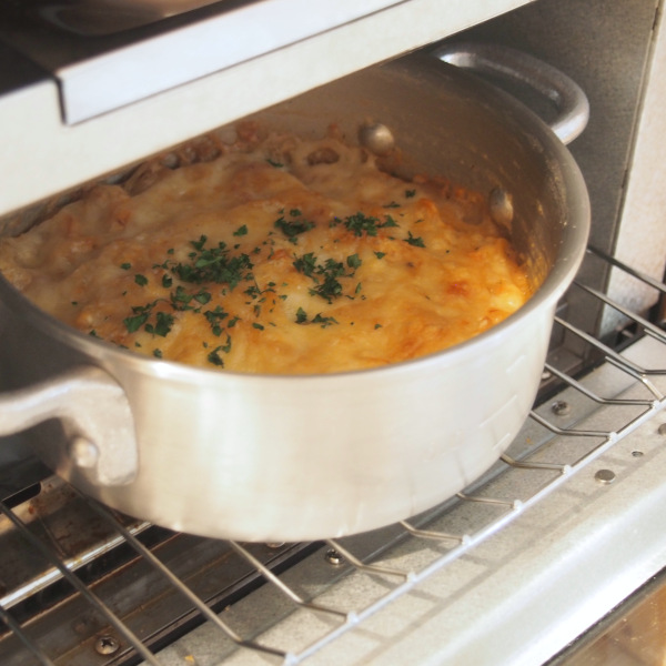 実は使い道は思ったよりも多く、浅い形状のため調理後そのまま器として食卓に出して使ったりもするくらい便利で、わが家のレギュラー入りを果たした直径15cmの外輪鍋。アクアパッツァのほかにもインスタントラーメン、白菜と豚バラのミルフィーユ蒸し、カボチャの煮付け、スンドゥブチゲや、オーブン調理のグラタンや野菜のグリルなど使い道はかなり幅が広いです。