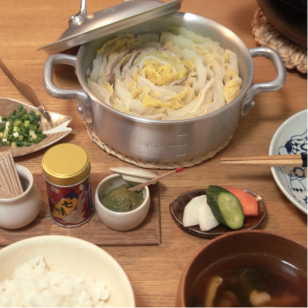 この日の夕飯は中尾アルミ製作所のニューキング外輪鍋15cmを使って白菜と豚バラのミルフィーユ蒸しを作ってみました。鍋の高さが低くアルミの特徴である熱伝導率が高いため、とにかく火の回りが早くてあっという間に出来上がってしまうことにびっくり。これならお腹が減っていてもすぐに食べられる!!ちなみに分量としては、ぎちぎちに詰め込んで2人前程度が作れますよ。お気に入りのポン酢や柚子胡椒をつけて召し上がれ~