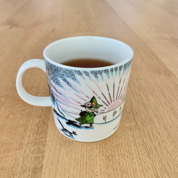 雪のムーミン谷に待ちに待ったスナフキンと春の訪れ!その瞬間を描いたマグカップ。本当に素敵ですね〜。「ムーミン後ろ後ろ〜!スナフキンが帰ってきたよ〜!」と教えてあげたくなります。限定マグの中でもお気に入りの逸品です。