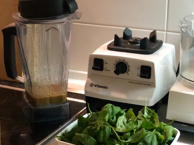 ベランダで育てているバジルが育ったので一気に剪定してジェノベーゼソースを作りました。バイタミックスに材料入れてガーッと回してものの数分で出来上がり! とても滑らかなソースができました。オイルのソースも容器に洗剤を数滴入れてまたガーッと回せば綺麗に落ちますよ。