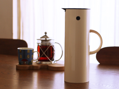 寒い日の相棒ステルトンのクラッシックジャグ。朝コトコト沸かしたお湯を注ぐとなんだか幸せな気持ちになります。最初はロッカーストッパーを使っていたのですが、寒い日にはピクニックストッパーの方が断然保温力があります。実用性だけでなく、インテリアとして心も温かくしてくれます。