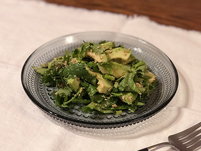 カステヘルミはボウルやプレート10cmなど、色々愛用していますが、17cmプレートに選んだのは大人っぽいグレー。これがいい感じで食卓を引き締めてくれます。ケーキのお皿としてもかっこよく決まりますが、最近このお皿によくのせるのが、ハマっているアボガドとパクチーのナムル。お気に入りの器で大好物を食べるとテンションも上がります。