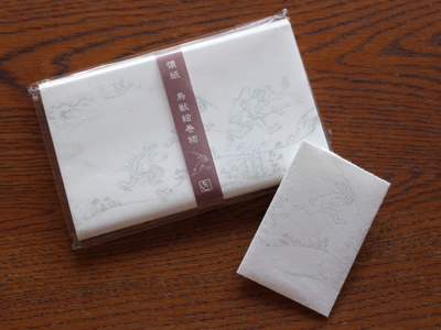 懐紙はお茶をやらない私にはハードルが高いアイテムでしたが、いざ使ってみるととっても便利! 立て替えてもらっていたお金を返すときや、ちょっとしたお菓子をのせるときなどなど…。バッグに入れていてもいいし、わたしは会社のデスクの中に置いています。鳥獣戯画の柄もかわい過ぎず気に入っています。
