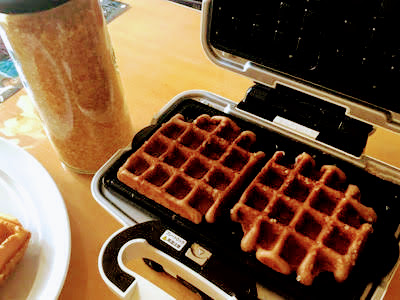 休みの日の朝食にワッフルメーカーを使って、ワッフルをたくさん焼いてみました。プレーンとチョコレートの2種類の生地を用意し、ザラメ糖をたっぷりかけたらカリカリのワッフルになりました。次はどんな組み合わせにしようかと考えると大人でも楽しめますよ。