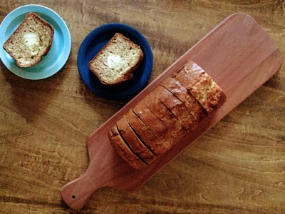 バゲットやパウンドケーキなど長いものを切るときに、あるといいなと思っていた形のカッティングボード。プレート代わりにも使えますよ。持ち手を含め50cmほどの長さですが幅が14cmなので、キッチンに出しっぱなしでも邪魔にならない大きさです。